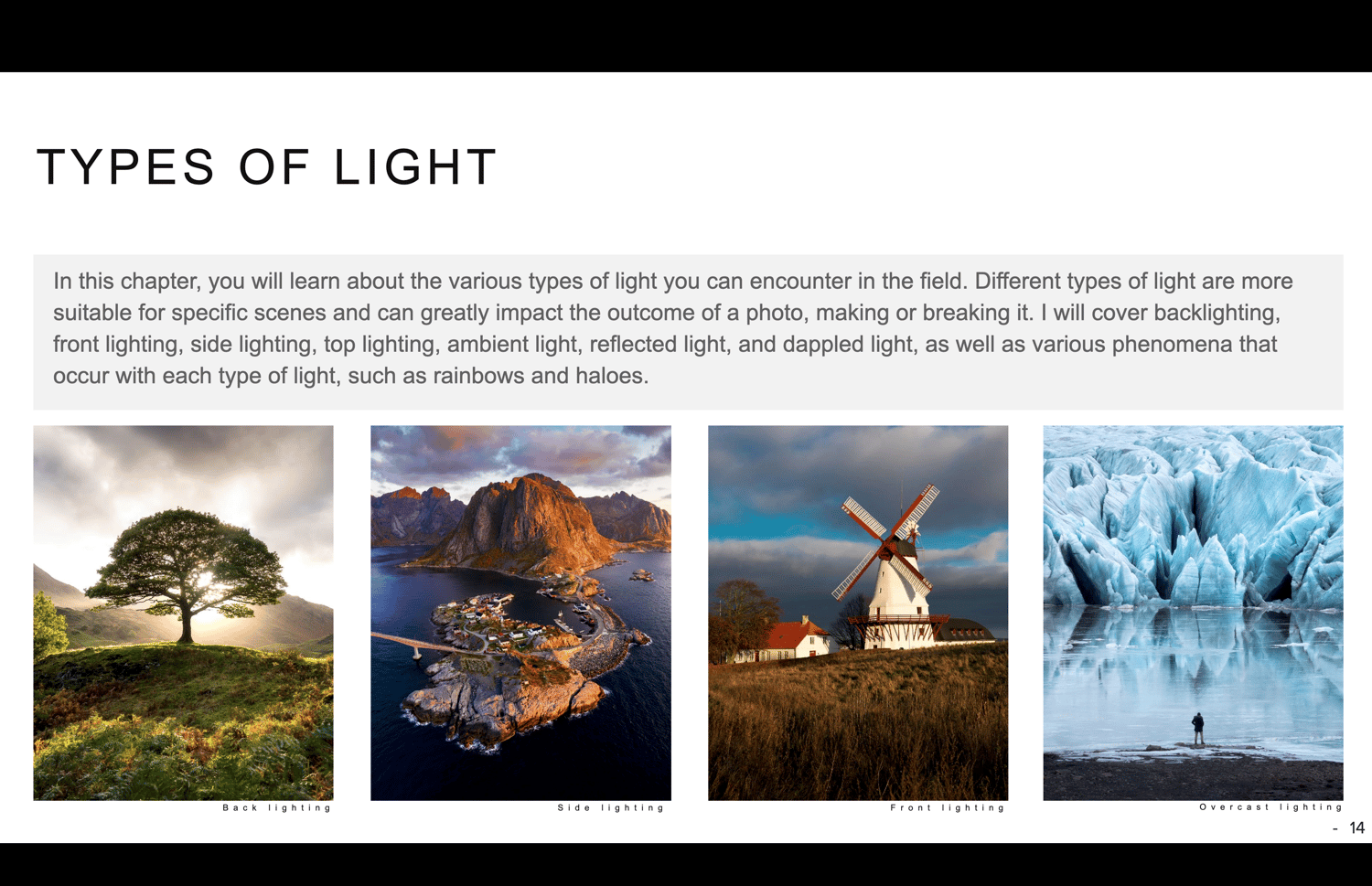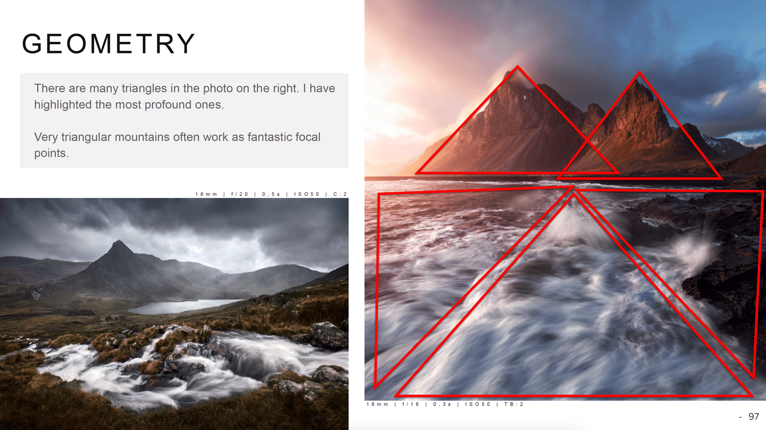 This bundle includes my two eBooks on composition in landscape photography and my eBook dedicated to light in landscape photography. The three guides are 124, 152, and 251 pages, respectively. Across these eBooks, I cover my complete thought process and approach to both light and composition when approaching a landscape photography scene. The two composition eBooks share ten invaluable compositional tools you need to know when composing your photos, while the light eBook features nine dedicated chapters on mastering light. All eBooks are designed to be easy to understand and are packed with loads of examples to maximize learning without being overly text-heavy. In the final chapters, I bring everything together and analyze my own photos. Throughout the eBooks, I've also added extended EXIF data to all the photos, giving you an in-depth understanding of how they were taken.